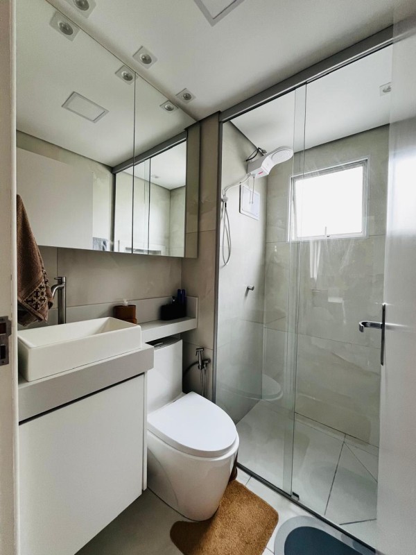 O imóvel com pisos em porcelanato áreas frias, manta vinílica demais ambientes, banheiro com box de vidro blindex, espelho e armários planejados sob pia, cozinha toda planejada com marcenaria moderna, conforto, funcionalidade e praticidade para o seu dia a dia.