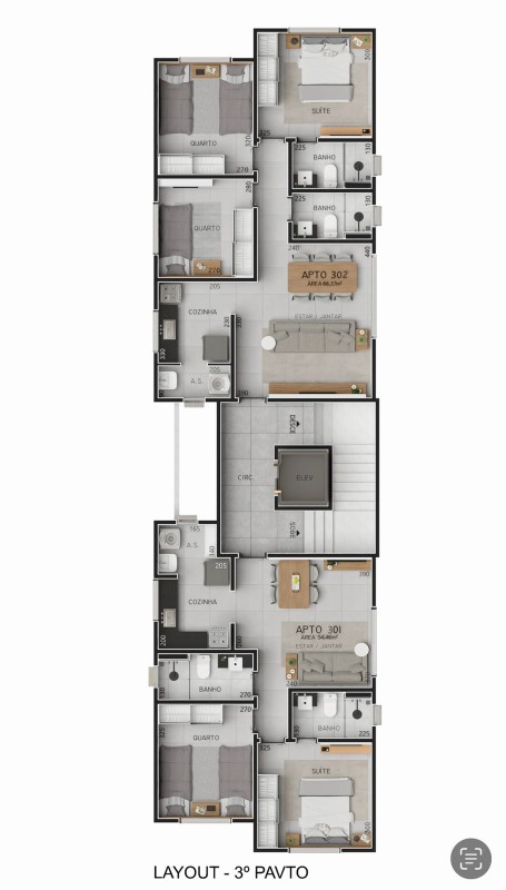 1° pavimento 2 quartos sendo 1 suíte banho social
